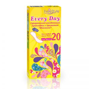 Freestyle EVERY DAY нежные и шелковистые ежедневные прокладки для современной женщины. Дарят ощущение утренней свежести и чистоты на весь день. Внутренний слой SKINBREATHES не позволяет жидкости выходить обратно, а мягкий как хлопок материал не допускает раздражения кожи. Технология PERFECT FIT обеспечивает супертонкость, эластичность, тем самым прокладки совершенно не ощущаются и незаметны под одеждой. Ароматическая серия Freestyle EVERY DAY представлена ароматом Нежного Жасмина.